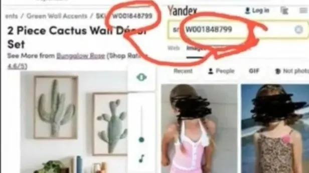 İddiaya göre Wayfair'in internet sitesinde listelenen söz konusu pahalı ürünlerin stok tutma birimine verilen isim olan SKU kodları, Rus arama motoru Yandex'e yazıldığında genç kızların fotoğraflarına ulaşıldığı söyleniyor.