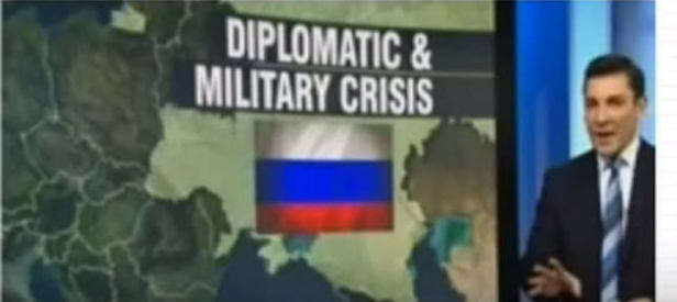 Amerikan haber kanalında sunucunun önünde durduğu haritada Rusya ve Ukrayna dışındaki tüm Avrupa ülkeleri koyu yeşil renkle gösterildi. Haritada Rusya ve Ukrayna ise aynı açık yeşil renkle gösterilerek bölgenin üzerine Rus bayrağı yerleştirildi.