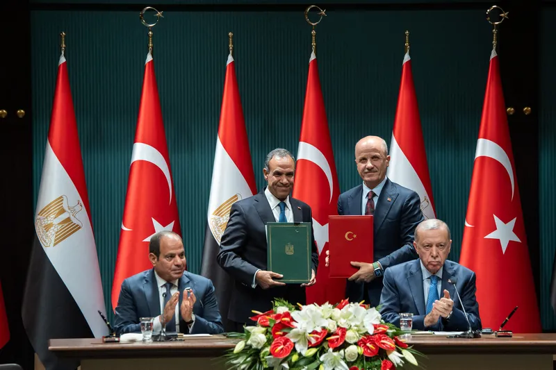 Dünya 12 yıl sonra gerçekleşen ziyareti konuşuyor. Mısır Cumhurbaşkanı Abdülfettah es-Sisi, 12 yılın ardından dün Ankara'ya önemli bir ziyaret gerçekleştirdi. Söz konusu ziyarette 17 alanda anlaşma imzalanması Arap basınında geniş yer kaplarken Yunan basını yaşadığı paniği satırlara döktü. Yunan Kathemerini gazetesi "Mısır ile Türkiye arasındaki anlaşmaların Atina için endişe verici gelişmeler" şeklinde manşetler attı. İşte detaylar...