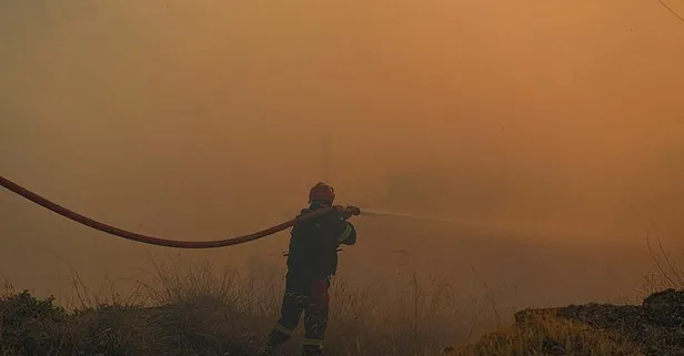 Yunan İtfaiye Teşkilatı yetkilileri, 1 helikopter, 6 uçak, 140 itfaiye personeli ve 48 araçla yangına müdahale edildiğini açıkladı.