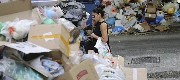 Grev nedeniyle toplanmayan çöp yığınlarından çevreye kötü kokular yayılırken, şehri ziyaret eden turistler de manzara karşısında şaşkın.