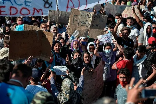 Yunanistan'ın Midilli Adası'nda bulunan yaklaşık 13 bin sığınmacının yaşadığı Moria kampında geçtiğimiz günlerde yangın çıkmış, kamp küle dönmüştü. Yangından dolayı evsiz kalan binlerce sığınmacı yollarda ve tarlalarda yatmaya başlamış ve adadan ayrılmak istediklerini dile getirmişti. Sığınmacılar, kendileri için yeni bir kampın yapılmasını ve adadan ayrılmalarına izin verilmemesi nedeni ile “özgürlük” protestosu gerçekleştirdi.