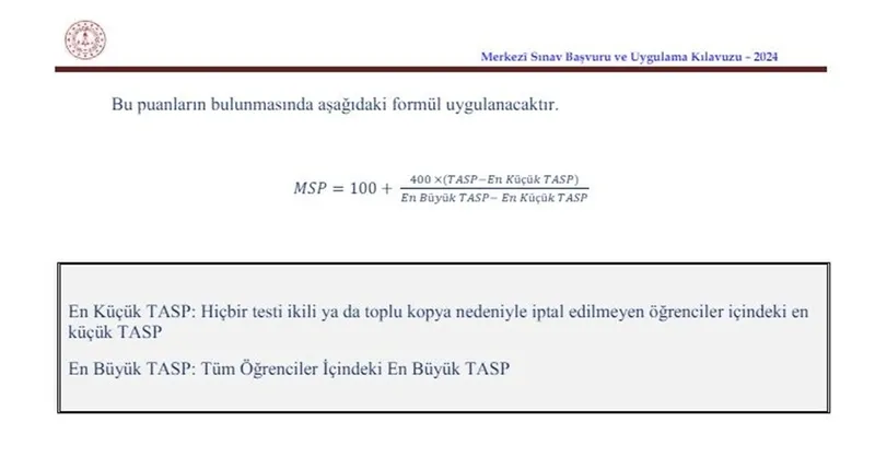 Merkezî Sınava katılacak olan öğrencilerin puanı, aşağıdaki işlem basamaklarına göre tek puan türünde hesaplanacaktır.
