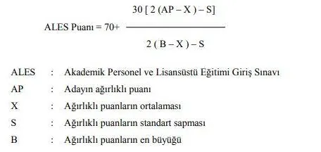 puanlarının ortalaması ve standart sapması ayrı ayrı hesaplanarak adayların ham puanları, ortalaması 50, standart sapması 10 olan standart puanlara dönüştürülecektir. Böylece her aday için Sayısal ve Sözel Standart Puanlar (SP) hesaplanacaktır. Bu standart puanlar kullanılarak her aday için sayısal ağırlıklı, sözel ağırlıklı ve eşit ağırlıklı olmak üzere 3 ağırlıklı puan (AP) hesaplanacaktır.