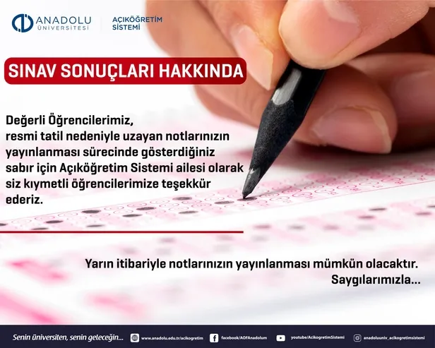 AÖF sonuçları açıklanıyor! Açıköğretim final sınav sonuçları ne zaman açıklanacak? Anadolu Üniversitesi