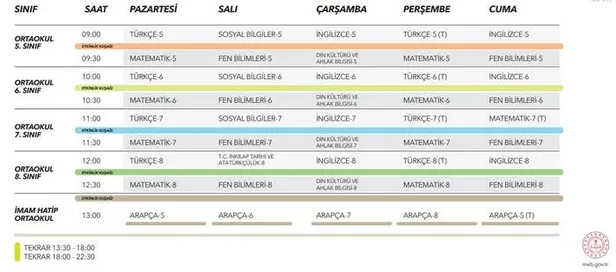 Eğitim öğretimini ortaokulda sürdüren öğrenciler için 23-27 Mart uzaktan eğitim ders programı şöyle…