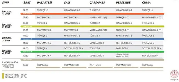Eğitim öğretimini ilkokulda devam ettiren öğrenciler için 23-27 Mart tarihleri arasında uygulanacak olan ders programı şöyle…