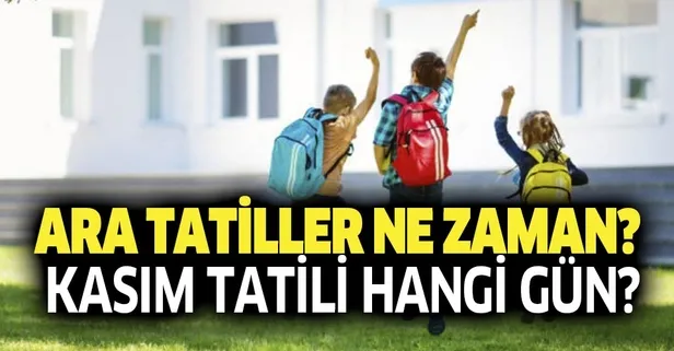 Kasım ara tatili için geri sayım başladı. Milli Eğitim Bakanlığı'nın yaz tatilinde müjdelediği ara tatil dönemi başlıyor. İlk ara tatil bu sene kasım ayına denk geliyor. 9 gün yapılacak tatile kısa süre kala öğrencilerin heyecanlı bekleyişi başladı. Peki, okullarda 9 gün Kasım ara tatili ne zaman? Yarıyıl tatili ne zaman başlıyor? İşte 2019 2020 okul tatilleri...