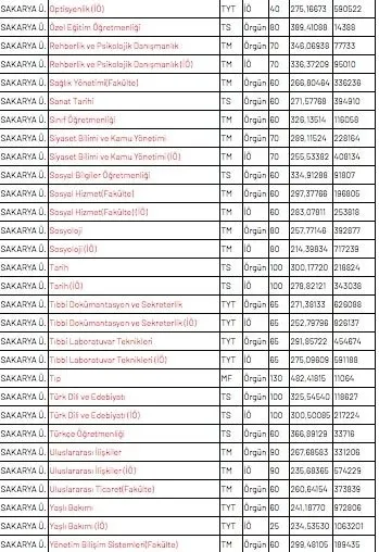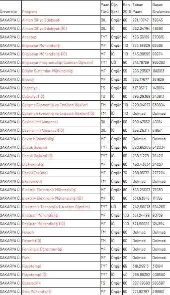 2019 SAKARYA ÜNİVERSİTESİ TABAN PUANLARI AÇIKLANDI MI?