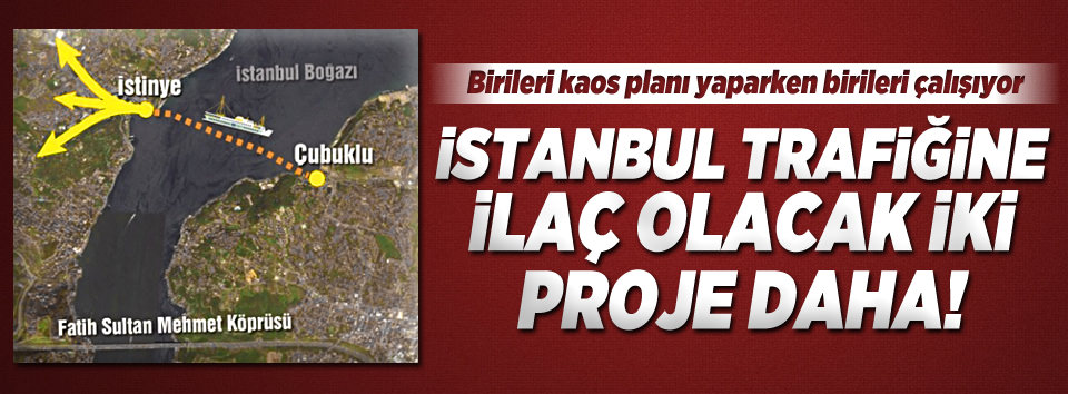 İstanbul trafiğine çözüm olacak 3. Köprü'ye alternatif iki proje daha hayata geçiyor. İstinye-Çubuklu arasında açılacak olan deniz hattıyla günde 10 bin araç deniz hattıyla karşıya geçecek. Mudanya-Büyükçekmece arasında kurulacak deniz hattı üzerinden ise Anadolu’dan gelen ağır vasıtaların bir kısmı İstanbul trafiğine girmeden Avrupa’ya geçecek.