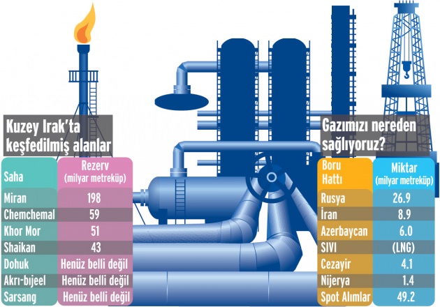 Türkiye'nin yıllık 50 milyar metreküplük gaz ihtiyacının büyük bir bölümümü karşılayan Rusya ve İran'ın Suriye'yi bahane ederek cephe oluşturmalarının en büyük sebebinin Kürt gazı olduğu ortaya çıktı. Zira Kuzey Irak topraklarındaki gaz ve petrol rezervlerinin pazara sunulabilmesi durumunda trilyon dolarla ifade edilecek bir zenginliğin bölgeye taşınacağı hesaplanıyor.