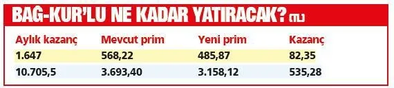 Prim müjdesinin yer aldığı yasa geçtiğimiz günlerde Resmi Gazete'de yayımlandı. Buna göre; Bağ-Kur'luların malullük, yaşlılık ve ölüm sigortaları primlerinin 5 puanlık kısmını Hazine karşılayacak. Sigortalıların bu imkandan yararlanabilmesi için; primlerin yasal süresi içinde ödenmesi, prim, idari para cezası ve bunlara ilişkin gecikme cezası ve borcunun bulunmaması gerekecek. Ancak bu borçlarını taksitlendiren, yapılandıran sigortalılar, bu işlemleri sırasında getirilen imkandan yararlanabilecek.
