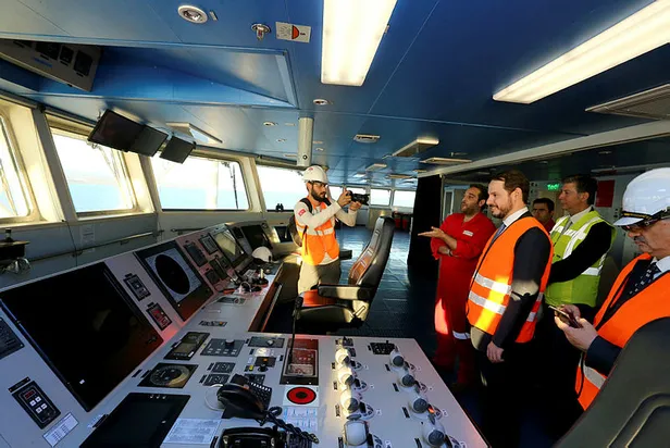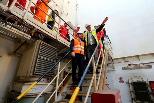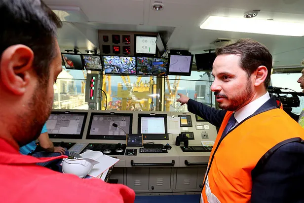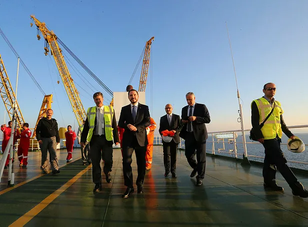 Enerji ve Tabii Kaynaklar Bakanı Berat Albayrak, Trans Anadolu Doğalgaz Boru Hattı (TANAP) projesi Çanakkale Boğazı denizaltı geçiş çalışmalarının yapıldığı gemide incelemelerde bulunarak yetkililerden bilgi aldı.