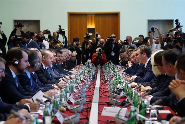 Toplantının basına açık bölümünde konuşan Sırbistan Cumhurbaşkanı Aleksandar Vuçiç, "Türkiye ile olan ilişkilerimiz bizler için çok mühim ve Türkiye ile olan ilişkilerimizin üçüncü bir ülke yüzünden zarar görmesine asla müsaade etmeyiz" dedi.