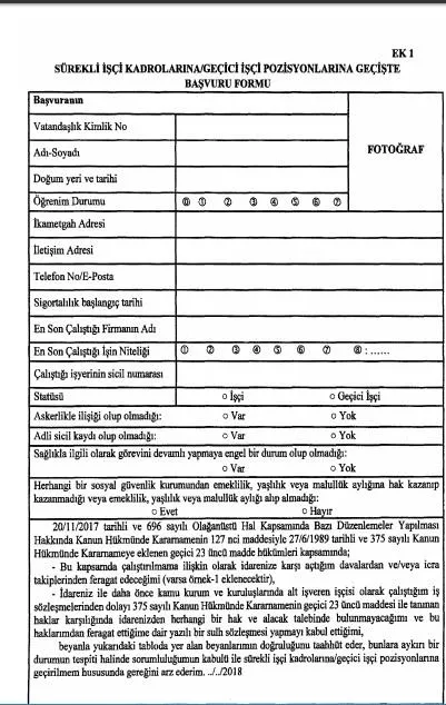 Taşeron işçi kadrosu başvuru formu! İşte gereken belgeler