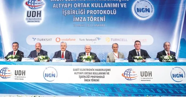 Sabit Elektronik Haberleşme Altyapısının Kiralanması Protokolü ile Türkiye'de fiber altyapı işlemleri tek elden yürütülecek, yıllık 5 milyarlık bir kaynak ülkenin kasasında kalacak. Ulaştırma Bakanlığı, Türk Telekom, Turkcell, Vodafone, TELKODER ve Türksat arasında imzalanan protokol töreninde konuşan Başbakan Binali Yıldırım, işbirliğiyle artık Türkiye'nin datasının Türkiye'de kalacağını belirtti. Sistem ile bilişim ve haberleşme alanında maliyetin en aza indirileceğini söyleyen Yıldırım, şöyle devam etti: "Dev işbirliğiyle fiber altyapı sistemi ile maliyetler düşecek, vatandaşın cebi ve ülkenin kasası dolacak. Her yerden geniş bantta bağlantı hizmeti vermeyi hedefliyoruz. Herkesin kazı yapması, ayrı maliyetti. Tek bir kurumun bunu yaparak, altyapıyı kurması ekonomimize katkı sağlayacaktır. Yıllardır bölünmüş bir sistemle ilerleyen altyapı sisteminin tek elde toplanması ekonomimize 5 milyarlık bir avantaj sağlayacak. Türkiye bilgiyi üreten, işleyen ve dağıtan dijital bir üs olacak."