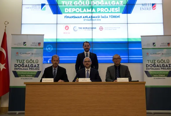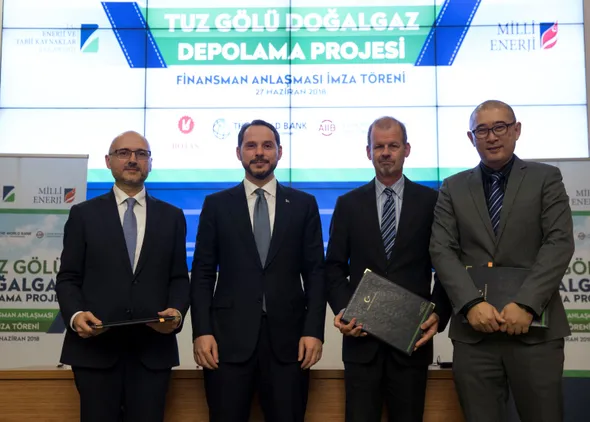 Tuz Gölü Doğalgaz Depolama Tesisinin yeni fazları için Dünya Bankası ve Asya Altyapı ve Yatırım Bankası ile toplamda 1,2 milyar dolarlık finansman anlaşmasına imza atıldığını kaydeden Albayrak, "Hem geri ödeme koşulları ve uygun maliyeti hem de düşük faizi ile Türkiye için önemli bir finansman kaynağı olacak. Geçen yıl Tuz Gölü Doğalgaz Depolama Tesisinin 550 milyon metreküplük ilk fazını devreye aldık. O gün milletimizle bu tesisimizin kapasitesini 5,4 milyar metreküpe çıkarma projemizi paylaşmıştık. İnşallah yoğun bir çalışma ile kapasiteyi kademeli olarak artıracak ve 2023 yılından önce 5,4 milyar metreküplük kapasiteye ulaşacağız. Silivri doğalgaz depolama tesisimizdeki genişleme ile birlikte 10 milyar metreküplük depolama hedefimize de ulaşacağız." ifadelerini kullandı.