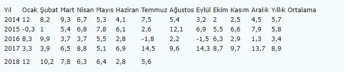 TÜİK verilerine göre, sanayi üretim endekslerinin takvim etkisinden arındırılmış yıllık değişim oranları şöyle: