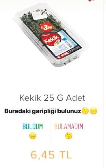 Migros'un internetten yaptığı satışlar şaşkınlık yarattı. 25 gram taze kekik paketlenip üzerine de 3.99 TL yazıldı. Ancak sepet fiyatı ise 6.45 liraydı. Şirket yetkilileri "Eski görsel kullanılmış. Daha sonra hatalı görsel kaldırılmıştır" dedi.