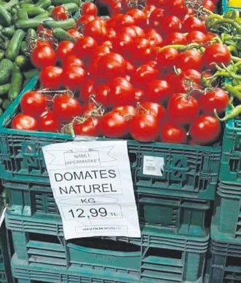 Domatesin etiketindeki ateş sönmedi. Bir şok fiyat da Namlı Hipermarketleri'nden geldi. Namlı'da satılan domatesin fiyatı 12.99 TL'ydi. Etiketin altındaki şu fiyat ise dikkat çekiciydi: Her şeyin en ucuzu...