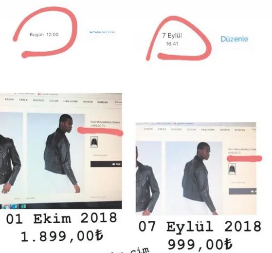 H&M firmasında 7 Eylül 2018'de 999.00 TL olan deri ceketin fiyatı, 1 Ekim 2018'de 1.899.00 TL'ye çıktı. Söz konusu artışı Twitter'daki sosyal medya hesabından deşifre eden İrem Yeşilyurt adlı kullanıcı şu yorumu yaptı: 22 günde Euro bu kadar çıktı mı ya. Yoksa adı stokçuluk mu!