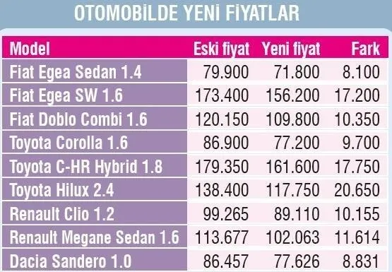 Hazine ve Maliye Bakanı Berat Albayrak'ın önceki gün açıkladığı vergi indirim paketi, piyasalarda bayram havası yarattı. ÖTV ve KDV müjdesinin özellikle otomotiv pazarına doping etkisi yapması bekleniyor. İlk 10 ayda yüzde 30 daralan pazarın son iki ayda yüzde 40 ila 50 arasında canlanacağı belirtildi. İndirim otomotivde fiyatları da ağustos seviyesine getirdi. Düzenleme sonucu binek otomobilde indirim ortalama yüzde 10, ticari araçta ise yüzde yaklaşık yüzde 15 oldu. Fiyatlar 7 bin 500 TL ile 28 bin TL arasında ucuzladı. ÖTV ve KDV indirimi dışında 3-4 bin TL'yi bulan hurda teşviği de hesaba katıldığında fiyatlar tüketiciler için oldukça cazip hale geldi. Ortalama fiyat indiriminin 20 bin TL'ye ulaştığı belirtiliyor. Hibrit otodaki indirim ise 17 bin 750 TL'yi buldu. 600 bine çekilen pazar hedefi 650 binin üstüne çıkarıldı. Mobilyada, ÖTV ve KDV indirimi sonrası raftaki fiyatlarda enflasyonla mücadele programı kapsamında yapılan yüzde 10 indirime ek olarak yüzde 10'luk bir indirim olacak.