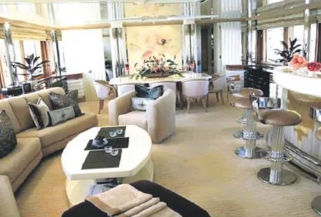 Mega yatta ayrıca iki yüzme havuzu, 50 metre derinliğe dalabilecek bir denizaltı, her birinde 182 santimlik TV bulunan 11 tane konuk kamarası var. Yaklaşık 70 kişilik mürettebatın tam zamanlı hizmet verdiği yatın haftalık kirası da 1 milyon dolar. 2 helikopter pistinin de olduğu yat için Dubai'den iki müşterinin olduğuna dikkat çekildi.