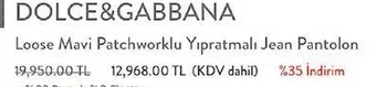 Dolce Gabbana’nın patcworklu jean pantolonu fiyatıyla dudak uçuklatıyor. Etiket fiyatı 19 bin 950 lira olan pantolonun indirimli fiyatı ise 12 bin 968 lira...