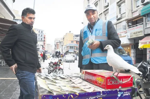 Adana'da seyyar Milli Piyango bileti satıcısı Halit Akdeniz, tezgahına bağladığı 'Talih Kuşu' adlı güverciniyle satışlarını katladı. Güverciniyle 5 yıldır bilet satışı yapan Akdeniz, vatandaşların güvercini görünce bilet almak istediğini söyledi. Akdeniz, "Daha önce bu kadar satış yapamıyordum. Şimdi günde 100 ila 150 arası bilet satıyorum. Kuş sayesinde satışlarım arttı" diye konuştu.