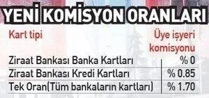 Kredi kartı ve banka kartını "Ziraat Bankkart" markasıyla tek kartta toplayan Ziraat Bankası, kart ve POS'ta komisyon oranlarını indirerek, üye iş yerlerine önemli avantajlar sağlayacak bir son dakika uygulamasını başlattı.