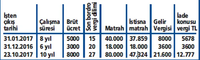 "Gelir Vergisi hesaplanan tutar, son maaş bordrosunda tabi olduğu vergi oranı üzerinden hesaplanmakta ve bu tutar üzerinden iadeye konu edilmektedir" dedi. Ercan bu konuda hak sahipleri için 3 örnek verdi: