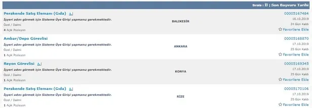 ŞOK Marketler Zincirinde görevlendirmek üzere personel alım ilanı İŞKUR'un resmi sitesinde yayımlandı. Aşağıdaki linke tıklayıp "İşyeri Ünvanı" kısmına ŞOK yazarak güncel ilanları görebilir, ardından İŞKUR üye bilgilerinizi girerek ilana başvuruda bulunabilirsiniz.