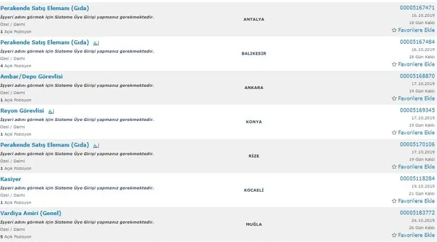 ŞOK Marketler Zincirinde görevlendirmek üzere personel alım ilanı İŞKUR'un resmi sitesinde yayımlandı. Aşağıdaki linke tıklayıp "İşyeri Ünvanı" kısmına ŞOK yazarak güncel ilanları görebilir, ardından İŞKUR üye bilgilerinizi girerek ilana başvuruda bulunabilirsiniz.
