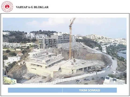 Yıkım kararı alınan 19 projeden 10'unun yıkımını proje sahipleri karşılarken, 9 proje ise Bodrum Belediye ekipleri tarafından yıkıldı. Ağustos ayında Bodrum'a gelen Bakan Murat Kurum, kaçak ve imara aykırı olan otel, komut ve iskelelerin yıkımı için proje sahiplerine 1 ay müddet vermişti. 1 ay boyunca Bakanlık yetkilileri Bodrum'da yaptığı incelemelerin ardından Bakan Kurum 1 ay sonra tekrar Bodrum'a gelerek yıkımları yerinde incelemişti.