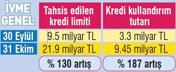 İvme Finansman Paketi kapsamında reel sektörümüze tahsis edilen krediler sadece Ekim'de yüzde 106 artışla 24.5 milyar TL'ye ulaştı.