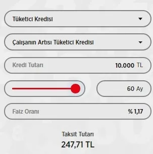 Kredi adı: Tüketici Ürün Paketi Kredi tutarı: 10 bin TL Kredi vadesi: