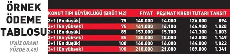 2+1 konutlar için; 500-TL (beşyüztürklirası) başvuru bedeli alınacaktır.