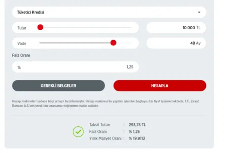 ZİRAAT BANKASI 10 BİN LİRA TÜKETİCİ KREDİSİ HESAPLAMA