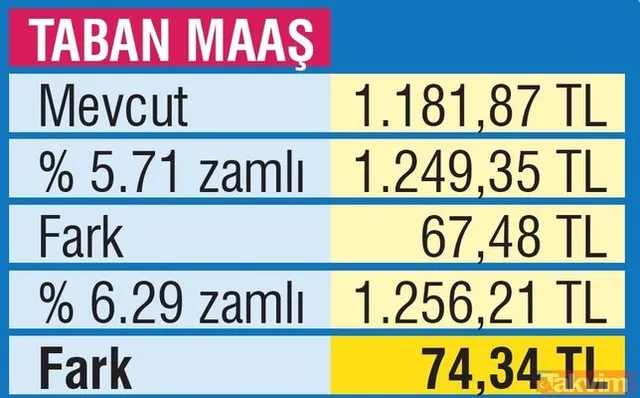 Halen en düşük emekli aylığı ek ödeme dahil bin 181 lira 87 kuruş. Bu maaş, zam oranı yüzde 6.29 çıkarsa bin 256 lira 21 kuruşa çıkacak. En yüksek aylık ise ek ödeme dahil 5 bin 887 lira 20 kuruştan, artış yüzde 6.29 olursa 6 bin 257 lira 50 kuruşa ulaşacak. Temmuz- Kasım enflasyonu yüzde 5.71 olarak gerçekleşmişti. Yani 5 aylık enflasyona göre zam oranı yüzde 5.71 çıktı. Aralık enflasyonuna göre bu oran artacak ya da azalacak.