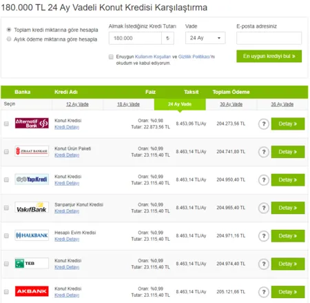 İŞTE 24 AY, 36 AY, 60 AY, 120 AY VE 180 AYLIK KONUT KREDİSİ HESAPLAMA