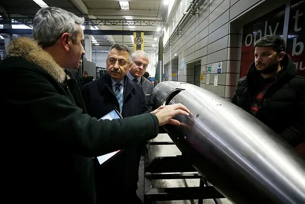 Oktay, daha sonra savunma sanayisi alanında faaliyet gösteren, uçak bombası gövdesi ve kuyruğunun üretildiği fabrikada incelemelerde bulunarak, imalat alanlarını gezdi.