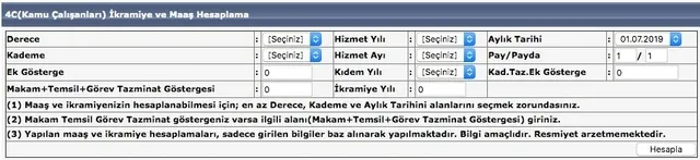 4C(Kamu Çalışanları) İkramiye ve Maaş Hesaplama için tıklayınız
