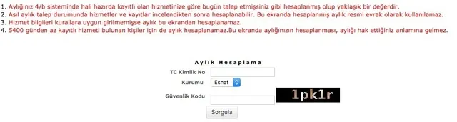 İstenen bilgilerin tamamı bilinmiyorsa E-devlet uygulamasına girilmesinde fayda vardır. Sisteme giriş yapıldıktan bütün bilgiler temin edilebilir ve sorunsuz şekilde hesaplama yapılır.