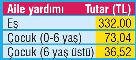 Eğer talep kabul edilirse, aile yardımı emekliler için de hayata geçirilecek. Çalışmayan eş için aylık 332 lira verilirken, 6 yaş üstü çocuk için ise 36,52 lira ödenecek.