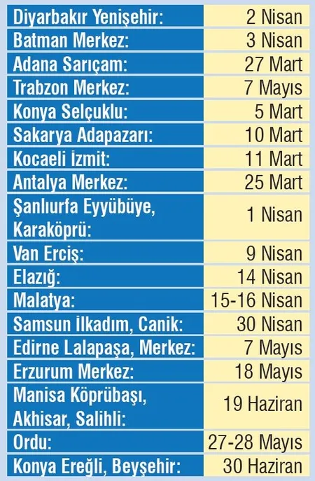 İstanbul'da talep toplanan 3 projedeki 10 bin konutun ilk kurası, Tuzla'da 117 bin 650 başvurunun yapıldığı 5 bin 750 konut için yapılacak. Kura töreni, 16 Mart'ta gerçekleştirilecek. Arnavutköy'deki 3 bin 750 konut için 18 Mart, Başakşehir'deki 500 konut için de 20 Mart tarihinde kura çekimi yapılacak. Ankara'da 7 projenin kuraları, 6 Mart'ta başlayacak. İlk kura bu tarihte Sincan'daki 2 bin 300 konut için çekilecek. Bursa Yıldırım projesinde 9 Mart, Gaziantep Şahinbey projesinde de 30 Mart tarihinde kura töreni var.