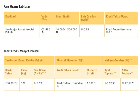 SarıPanjur Konut Kredisi Paketi