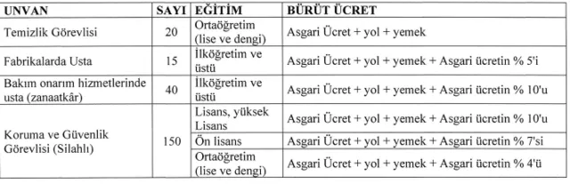 Yayımlanan duyuruda işçilere verilecek maaşlara da yer verildi. İşte alınacak temizlik görevlis, güvenlik görevlisi ve ustalara verilecek maaş: