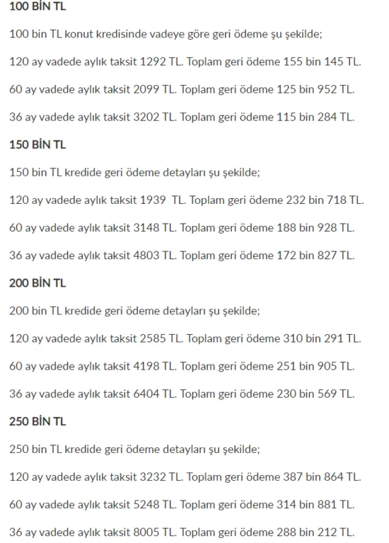*500.000 TL tutarlı, 120 ay vade, aylık %0,79 faiz oranı, %0,50 kredi tahsis ücreti ile kullandırılan konut kredisinin yıllık maliyet oranı % 10,0701'dir. "
