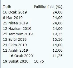 Ocak 2019'dan bu yana politika faiz oranındaki değişim şöyle: