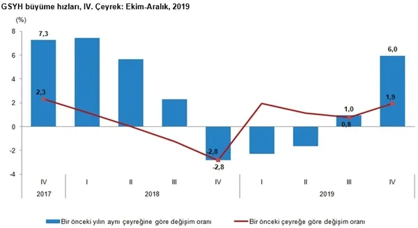 GSYH 2019 YILI DÖRDÜNCÜ ÇEYREĞİNDE %6,0 ARTTI